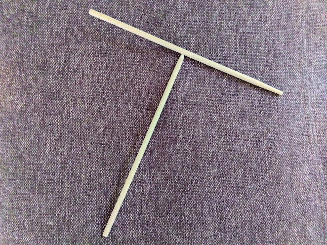 竹の割りばしを削り、穴をあけ、はめ込みました。